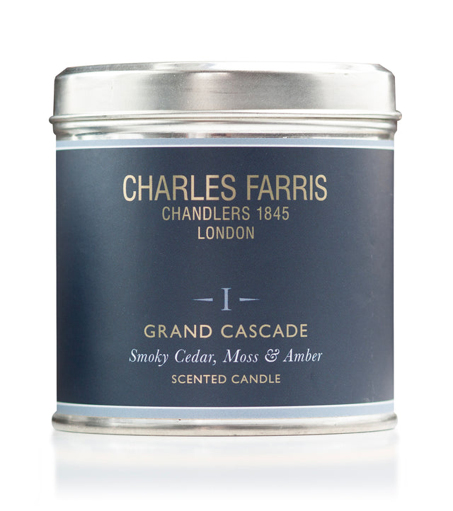 Charles Farris Grand Cascade Scented Tin Candle, Smoky Cedar, Moss and Amber