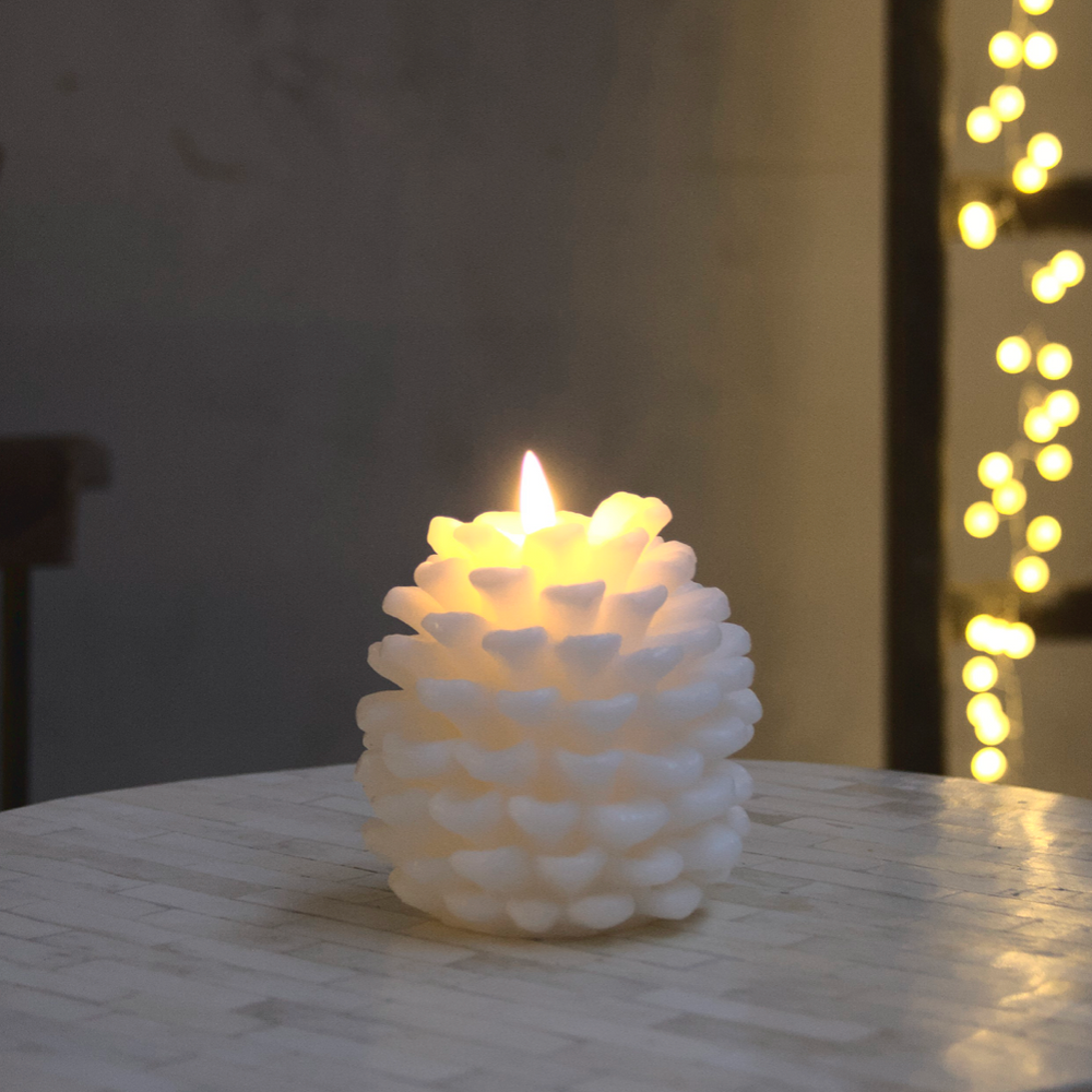 LED Pinecone Candle, White is backordered and will ship as soon as it is back in stock.