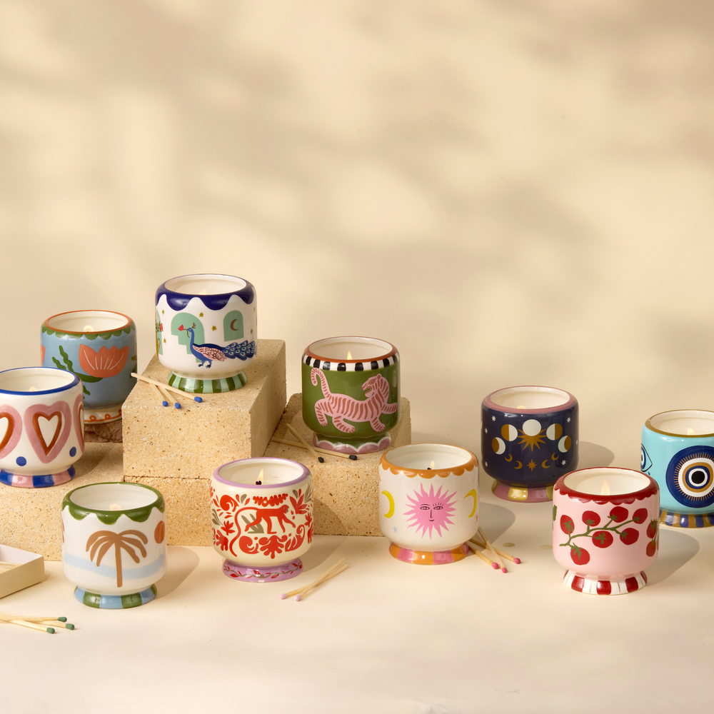 Bring the zest and thrill of a  Mediterranean summertime  to the comfort of your indoor spaces with this ceramic hand painted candle from the A dopo collection, made from 100% sustainable and natural soy wax that give a high quality and consistent burn, featuring the vibrant hues and inviting patterns of Morocco, hand-painted with individual brushstrokes for an artisan feel, in a wonderful scent of zesty Bergamot, sweet Orange Blossom & Ylang  with a hint of Lilac, Petitgran & Green Foliage on a base Musk of Rosewood, Muguet, When the wax runs out, simply repurpose the vessel as a one-of-a-kind planter or vase to add some colour and whimsy to your next outdoor dinner party.