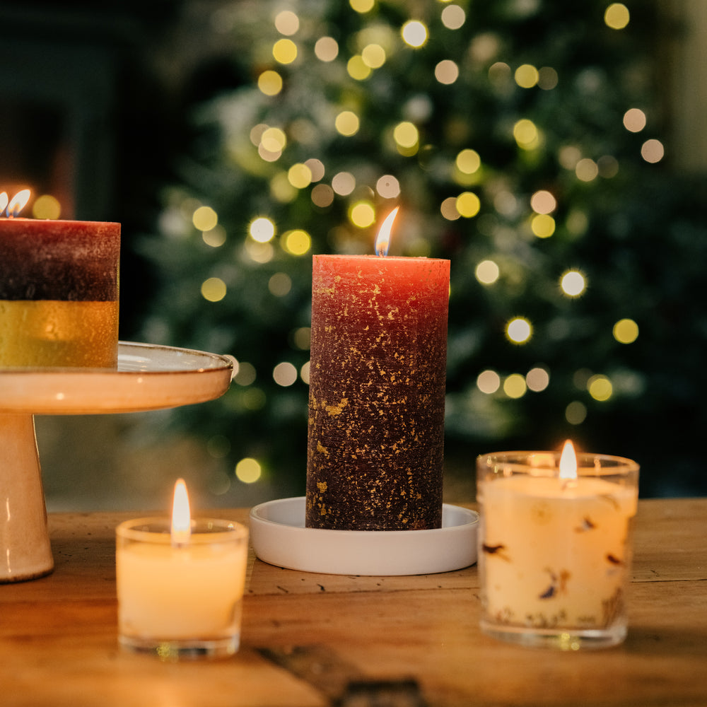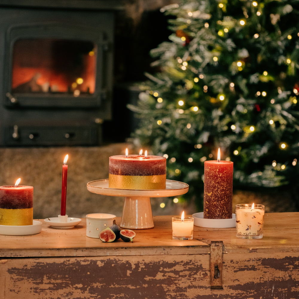 St Eval Gold Marbled Scented Pillar Candle, Figgy Pudding