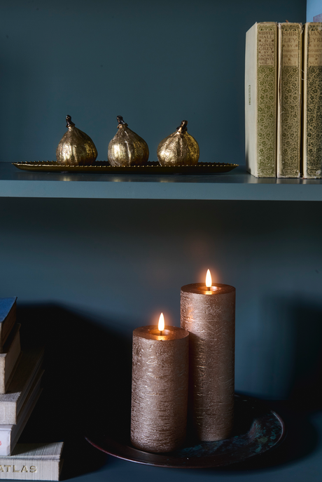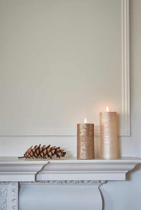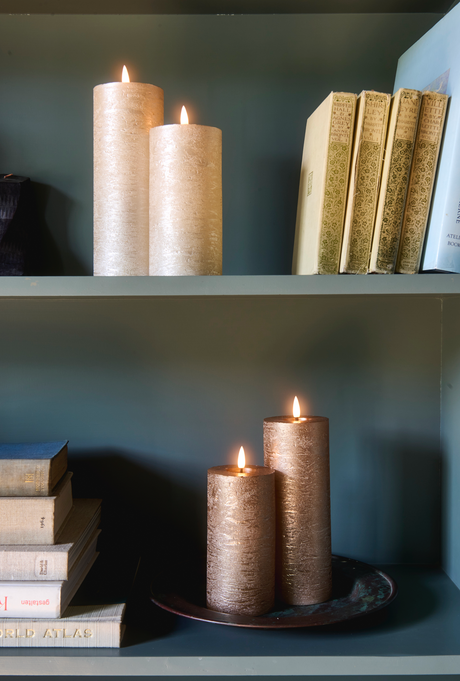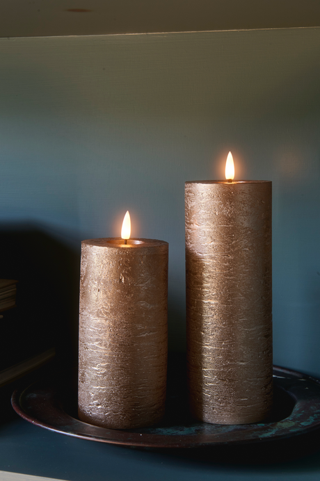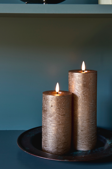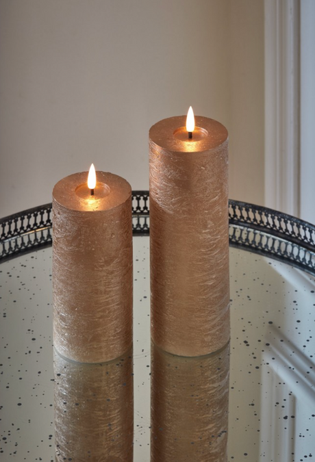 LED Pillar Metallic Candles Dark Champagne ( Set Of 2)