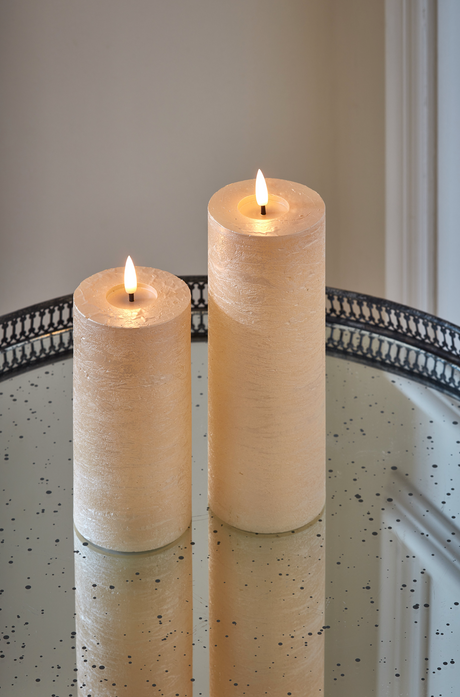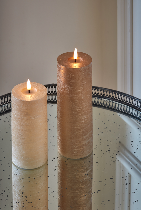 LED Pillar Metallic Candles Light Champagne (Set Of 2)