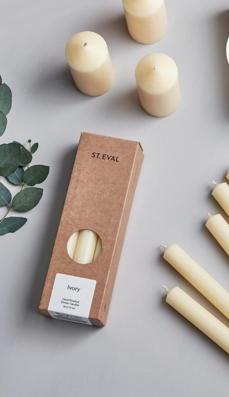 St Eval Unscented Dinner Candle, Ivory (Pack Of 6)