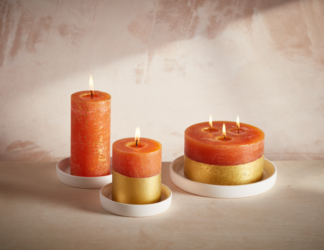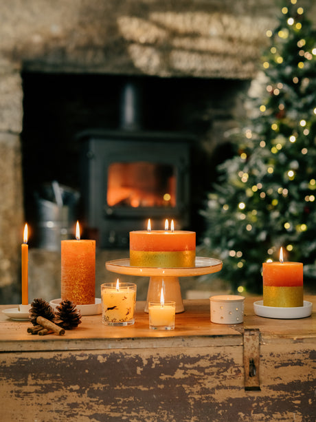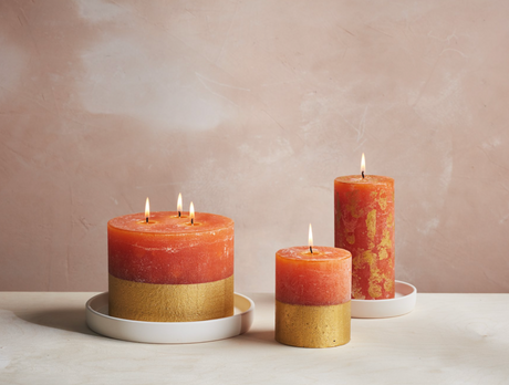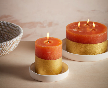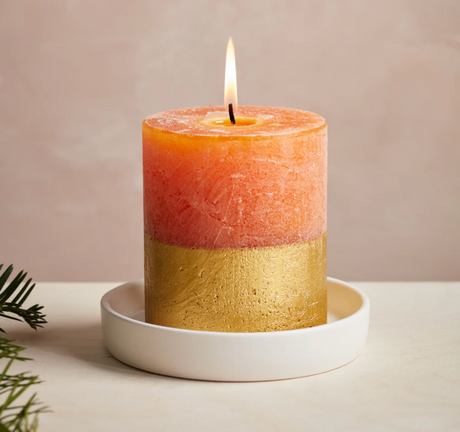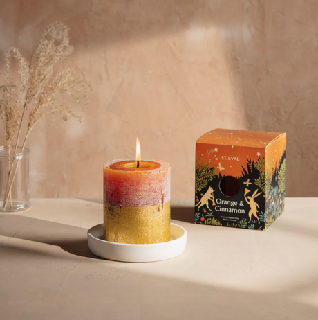St Eval Gold Dipped Scented Pillar Candle, Orange & Cinnamon