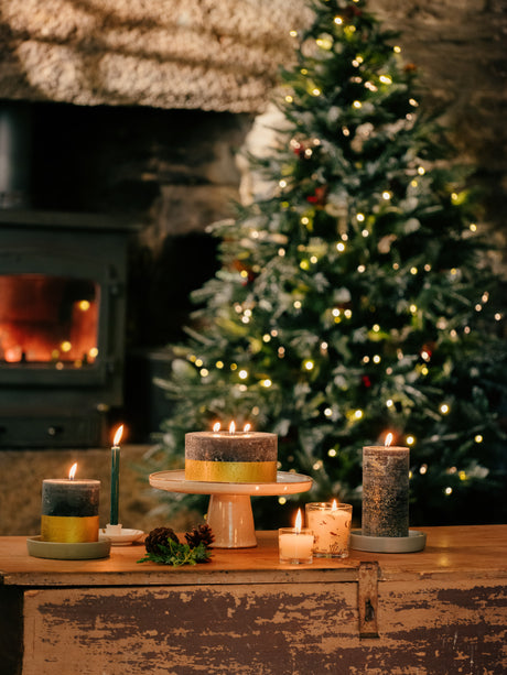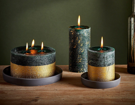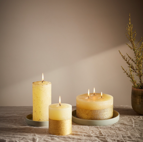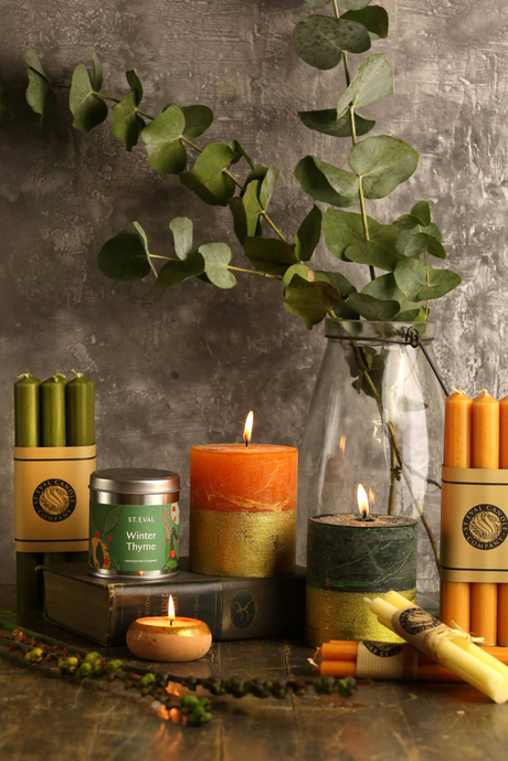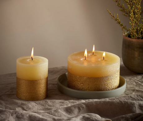 St Eval Gold Dipped Scented Pillar Candle, Winter Thyme