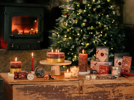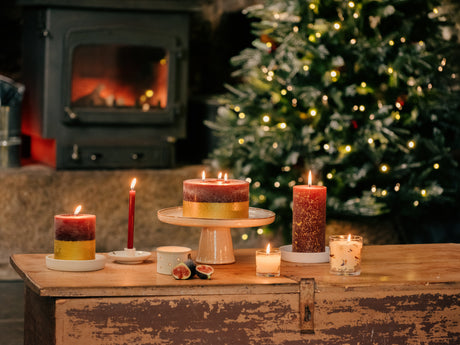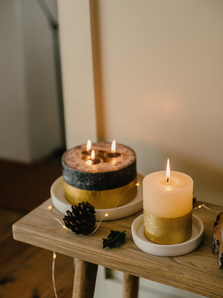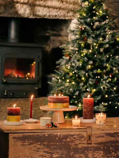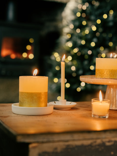 St Eval Gold Dipped Scented Pillar Candle, Figgy Pudding