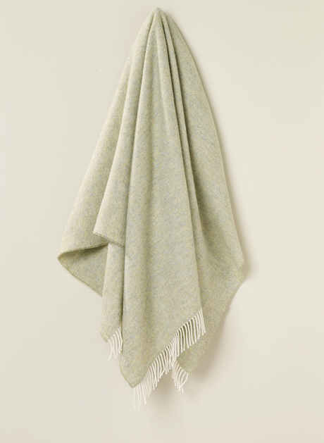 Bronte By Moon Herringbone Shetland Wool Throw, Light Sage