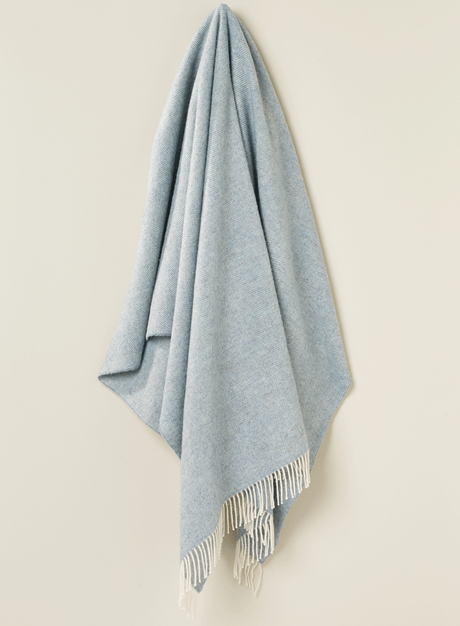Bronte By Moon Herringbone Shetland Wool Throw, Duck Egg Blue