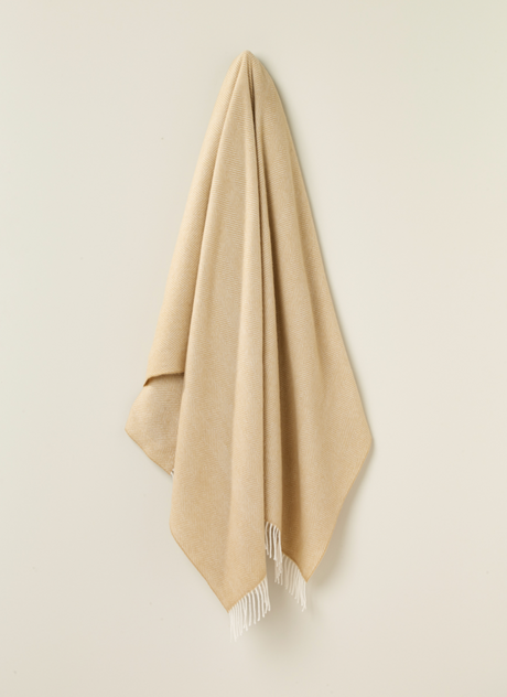 Bronte By Moon Herringbone Merino Wool Throw, Natural