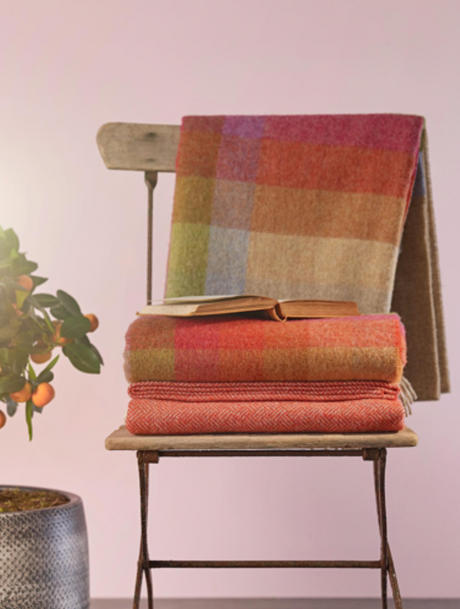 Bronte By Moon Herringbone Shetland Wool Throw, Flame