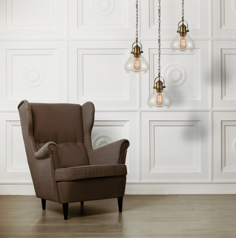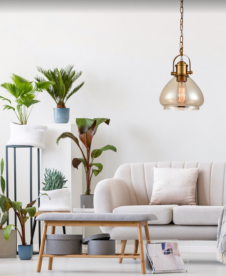 Vista Amber Glass Pendant, Antique Brass