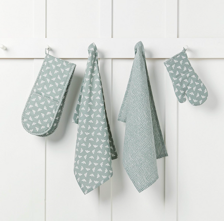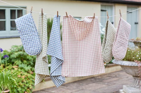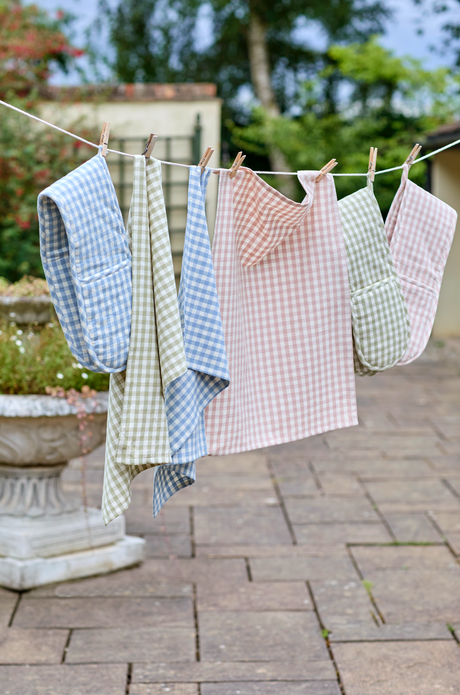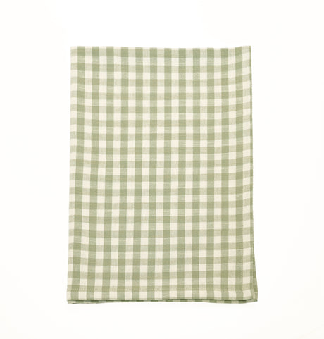 Walton & Co Gingham Cotton Tea Towels, Pale Olive (Set Of 2)