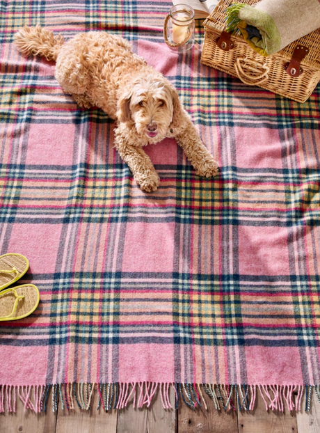 Bronte By Moon St Ives Shetland Wool Throw, Pink