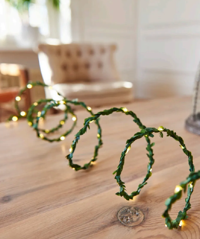 This festive fairy light features beautiful green leaves entwined with 60 warm white LED lights, wrap-around candles with some red berries, pine cones and pretty blooms for a festive table centrepiece, or place on your mantlepiece or window sills for a dazzling light display that's will brighten up your home.