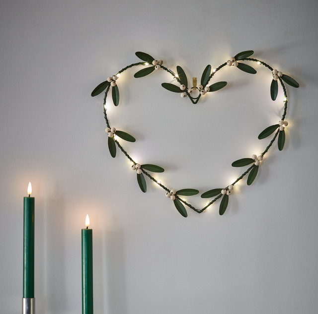 These stunning heart-shaped wreaths feature delicate mistletoe leaves entwined with 18 warm white LEDs, hang it from the ceiling, wall or in your window for that festive feeling.