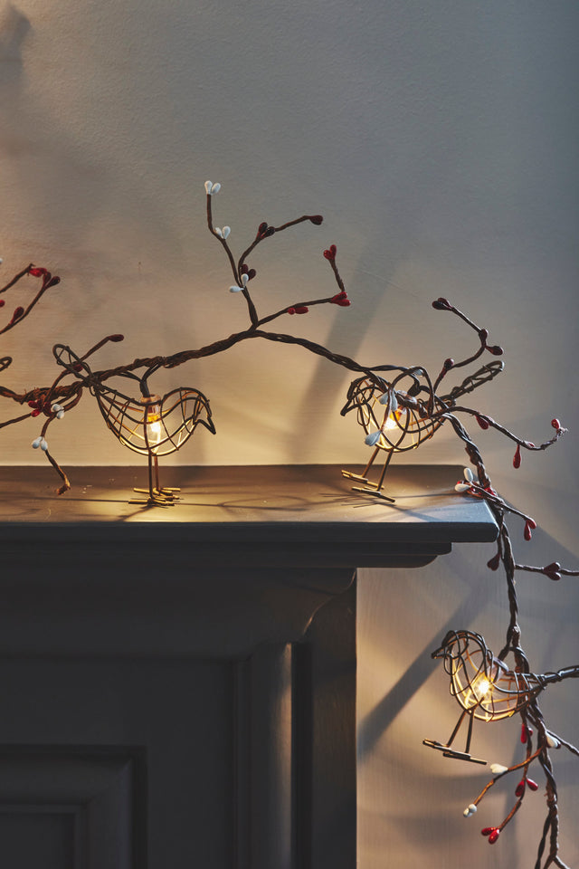 These stunning fairy lights featuring cute robins entwined with red & white winter berries and 12 warm white LEDs lights, add some green ivy, eucalyptus leaves and pretty blooms for a festive table centrepiece, or hang on your door, wall for a dazzling light display that will Transform your home into a winter wonderland.