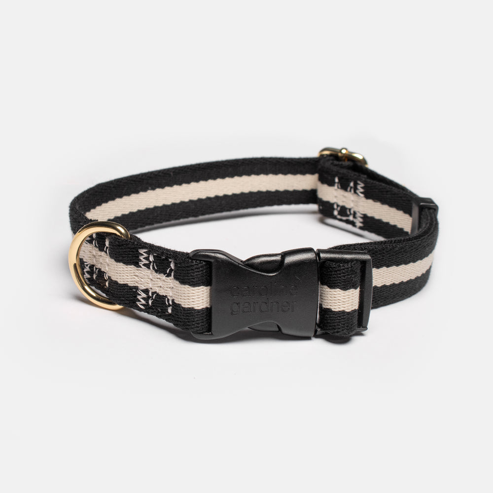 Provide optimal comfort and safety for your furry friend as they explore their outdoor surroundings, with this smart adjustable dog collar designed to provide comfort and security, made from cotton webbing with a quick-release clip fastening and D ring, in a beautiful black & cream stripes, offering maximum comfort for your pup's daily walks.