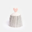 Make from durable stoneware & hand painted & glazed featuring a monochrome stripes  design with a contrasting pastel pink heart shaped lid, is dishwasher safe and great for everyday use and will make a perfect gift.