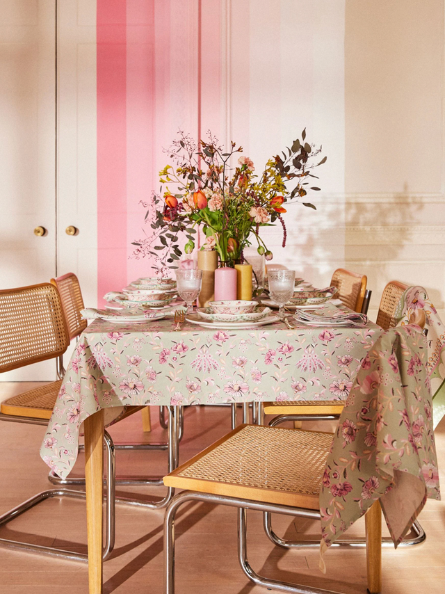 Tablecloths can help create beautiful tablescapes for entertaining - and concealing a table that might need a bit of TLC! Whether hosting a dinner party, or using for everyday, this fun retro tablecloth is made from 100% cotton for superior softness and features a vintage floral pattern in soft sage green & pink hues.