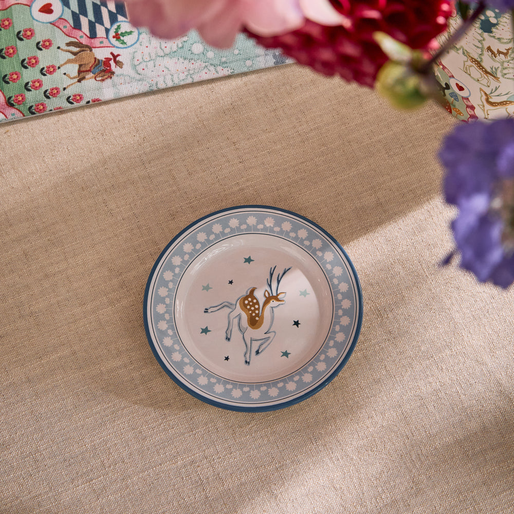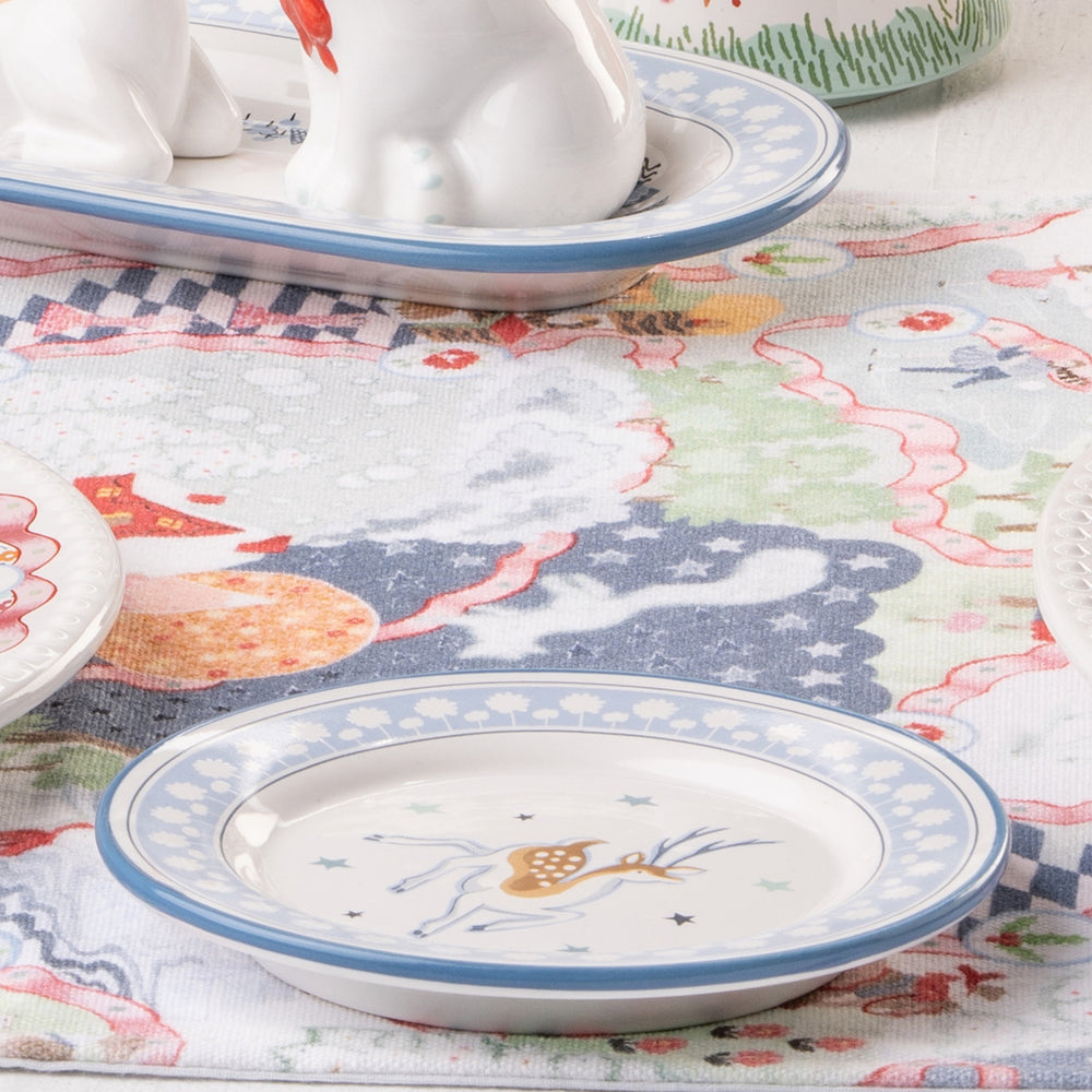 Crafted from durable stoneware featuring an adorable deer illustration surrounded by twinkling stars with a forest themed boarder in beautiful pale blue, that brings a whimsical & seasonal touch to your countertop & helps keep your surfaces clean.