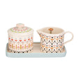 Brighten your table with this gorgeous sugar pot & milk jug set from the Painted Table range made from durable stoneware featuring two gorgeous retro floral patterns with a pastel blue tray with pink candy stripes perfect for any occasion whether you are entertaining guests or for everyday use.