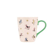 Bring a pop of colour to your table with this charming mug featuring a colourful dog pattern running around with tennis balls with a contrasting jade green handle, the perfect companion for your morning brew.