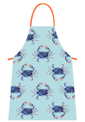 Keep your clothes free from baking mess and protect yourself from cooking spillages with this fun and practical apron made from 100% cotton featuring jazzy crabs in a beautiful pastel blue background with adjustable neck straps, it's sure to make a summer statement.
