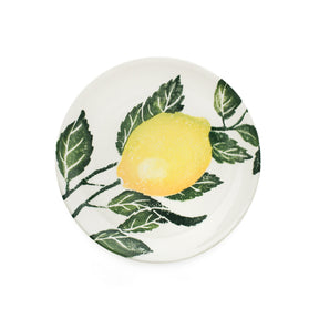 Turn each meal into a vibrant experience with this stunning side plate made from high-quality earthenware, featuring gorgeous hand printed illustration of a brightly coloured Sicilian lemons on the vine inspired by the colours of Mediterranean orchards with vibrant yellow & greens painted in beautiful water colours capturing the freshness of the fruits , mix and match with other items from the range for a truly stunning tablescape.