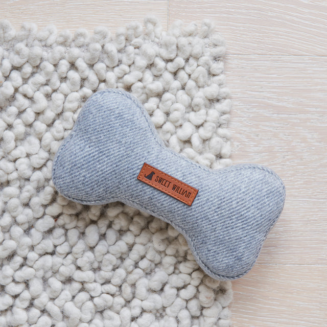 Treat your pup to a new with this bone shaped toy, handmade from tweed in a gorgeous light grey colour with an internal squeaker that will bring your pouch hours of entertainment and makes a wonderful treat for any dog.