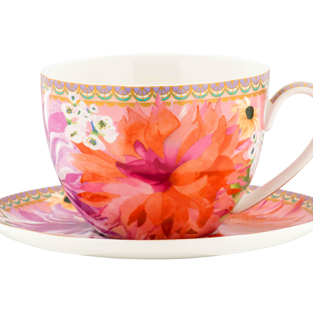 Maxwell & Williams Teas & C’S Dahlia Daze Breakfast Cup & Saucer, Pink