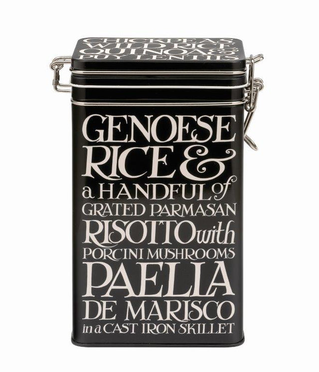 Made from stainless steel featuring Emma's iconic black toast pattern that will inject colour and life into your kitchen ,a perfect solution for keeping your cupboard staples fresh whether it be rice, flour or barley, the clip top lid tightly presses the silicone seal against the canister for an airtight seal.