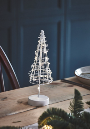 This gorgeous tree features 20 warm white LEDs sparkling light that will Transform your home into a winter wonderland, use on the mantle, windows or shelf, add some green ivy, berries and pretty blooms around the base for a festive table centrepiece.
