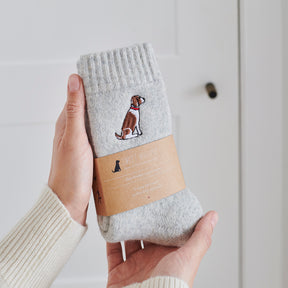 Enjoy all-day comfort and support with this exceptionally soft socks and feature an adorable embroidered Springer Spaniel on a pale grey background, made from a luxurious soft wool blend that’s warm when it’s chilly but breathable enough for summer, perfect for evey day use, the perfect gift for dog lovers.
