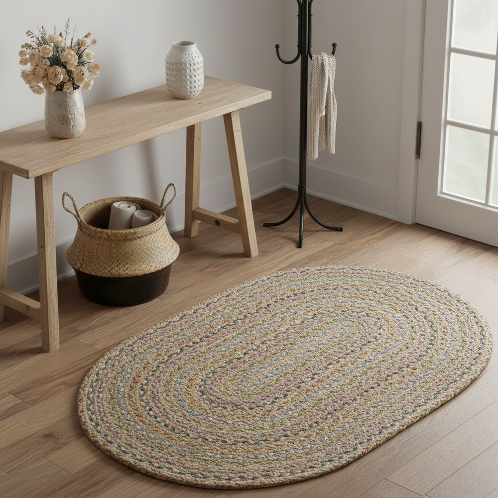 The Braided Rug Company Oval Jute Rug, Pastel Fairisle