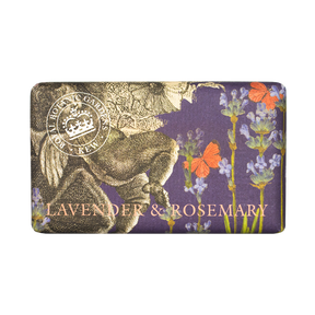 The Kew Gardens Lavender and Rosemary Soap is fragranced with top notes of lavender and rosemary and enhanced with the freshness of mint on a base of hay-dried lavender flowers with vanilla, cedar and musk combine to create this classically aromatic scent, enriched with moisturising shea butter and vegetable glycerine to nourish and care for the skin, wrapped in a printed paper with beautiful illustrations inspired by the plants, from Kew’s historical archives.