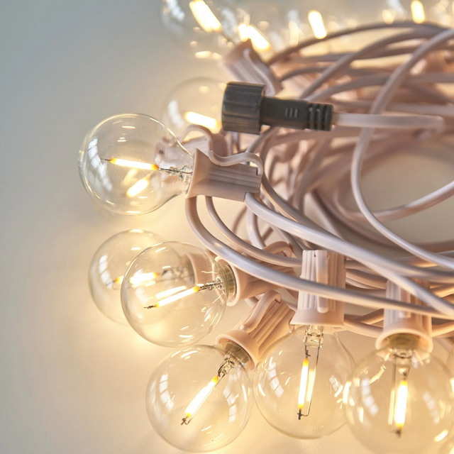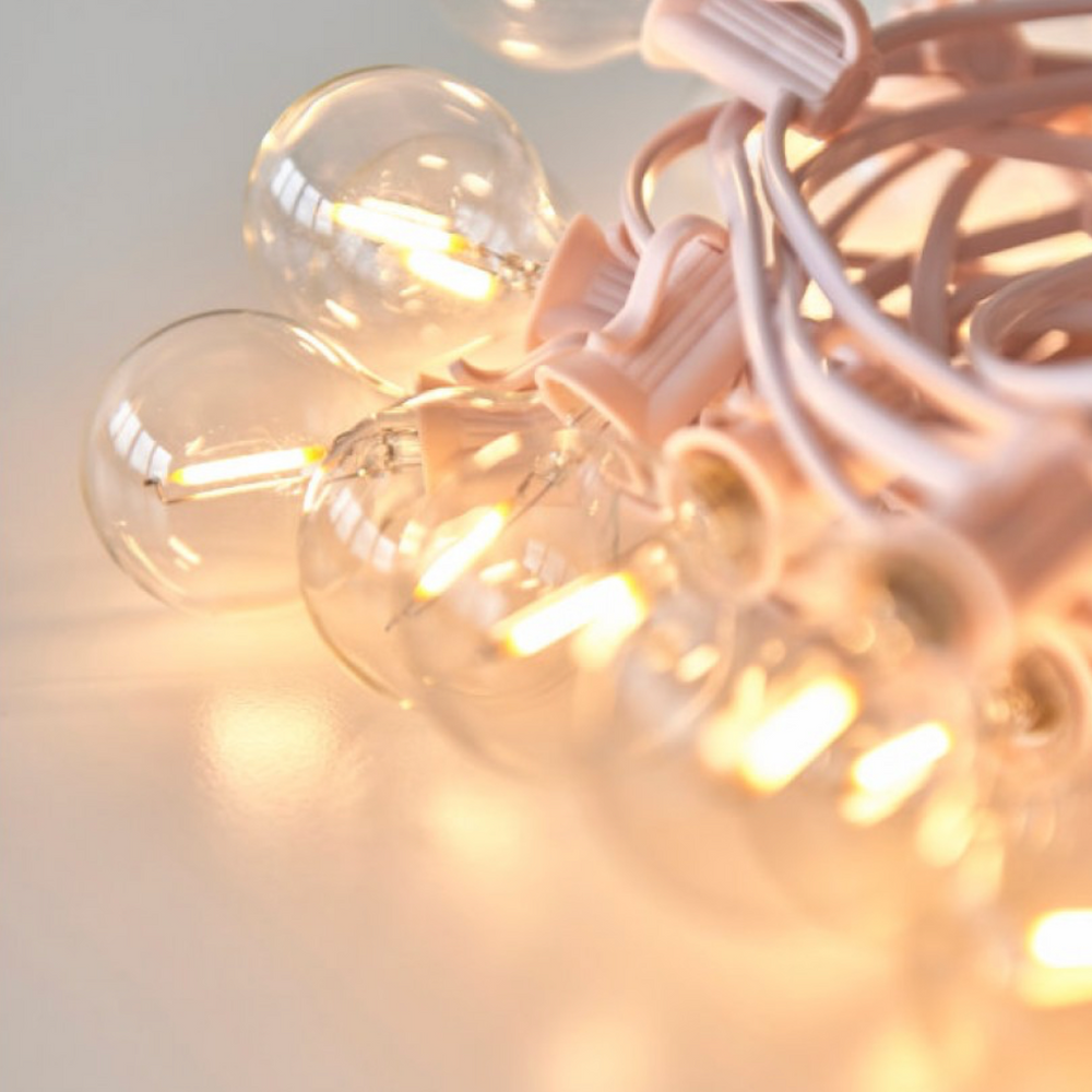 Introducing our Festoon Light, an easy and stylish way to elevate any space, with a sleek design and soft lighting, you can create a warm and inviting atmosphere for any occasion, featuring 15 warm white LED light bulbs intwined on a pastel pink wire with a connectable system that will create a warm & inviting atmosphere, perfect for parties, weddings & outdoor gatherings
