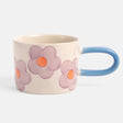Add a fun twist to your tea and coffee time with this charming hand-painted & glazed mug made from durable stoneware featuring a beautiful pastel purple daisies print with a contrasting blue elongated handle, is dishwasher safe and great for everyday use and will make a perfect gift.