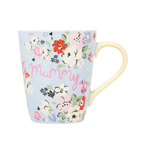 Featuring a colourful floral pattern with the word mummy in the middle finished with a contrasting yellow handle, Perfect for morning coffee or tea.