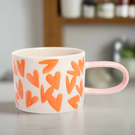 Caroline Gardner Ceramic Mug, Orange Hearts