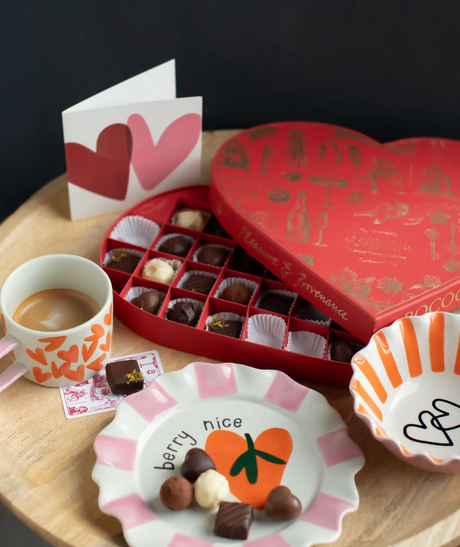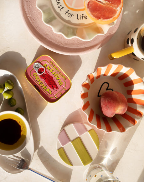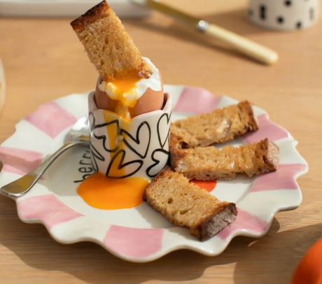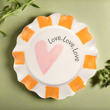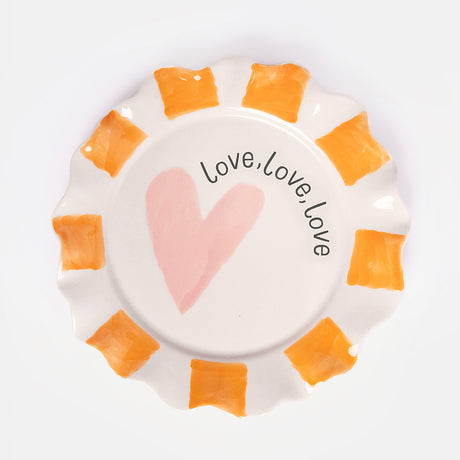 Caroline Gardner Orange Stripes Side Plate, Pink Heart