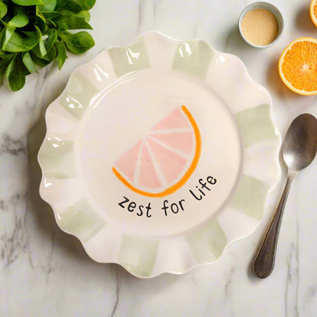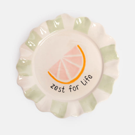 Caroline Gardner Green Stripes Side Plate, Grapefruit
