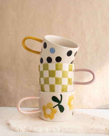 Caroline Gardner Ceramic Mug, Mono Check Grids