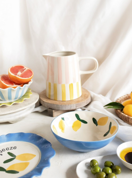 Caroline Gardner Lemons Stoneware Shallow Bowl