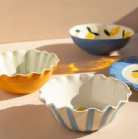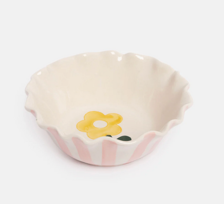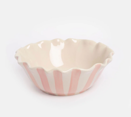 Caroline Gardner Scalloped Cereal Bowl, Pink Stripes