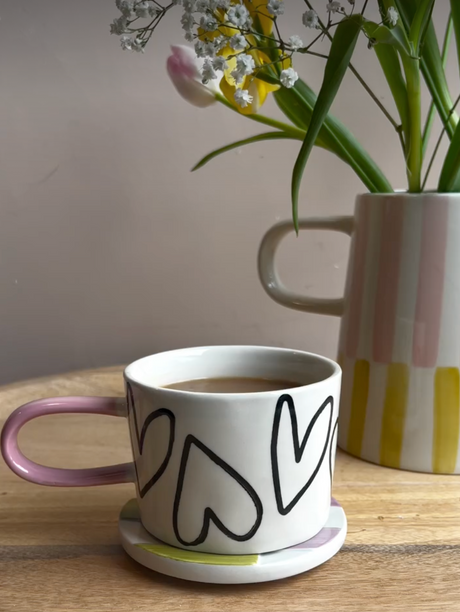Caroline Gardner Ceramic Mug, Mono Hearts