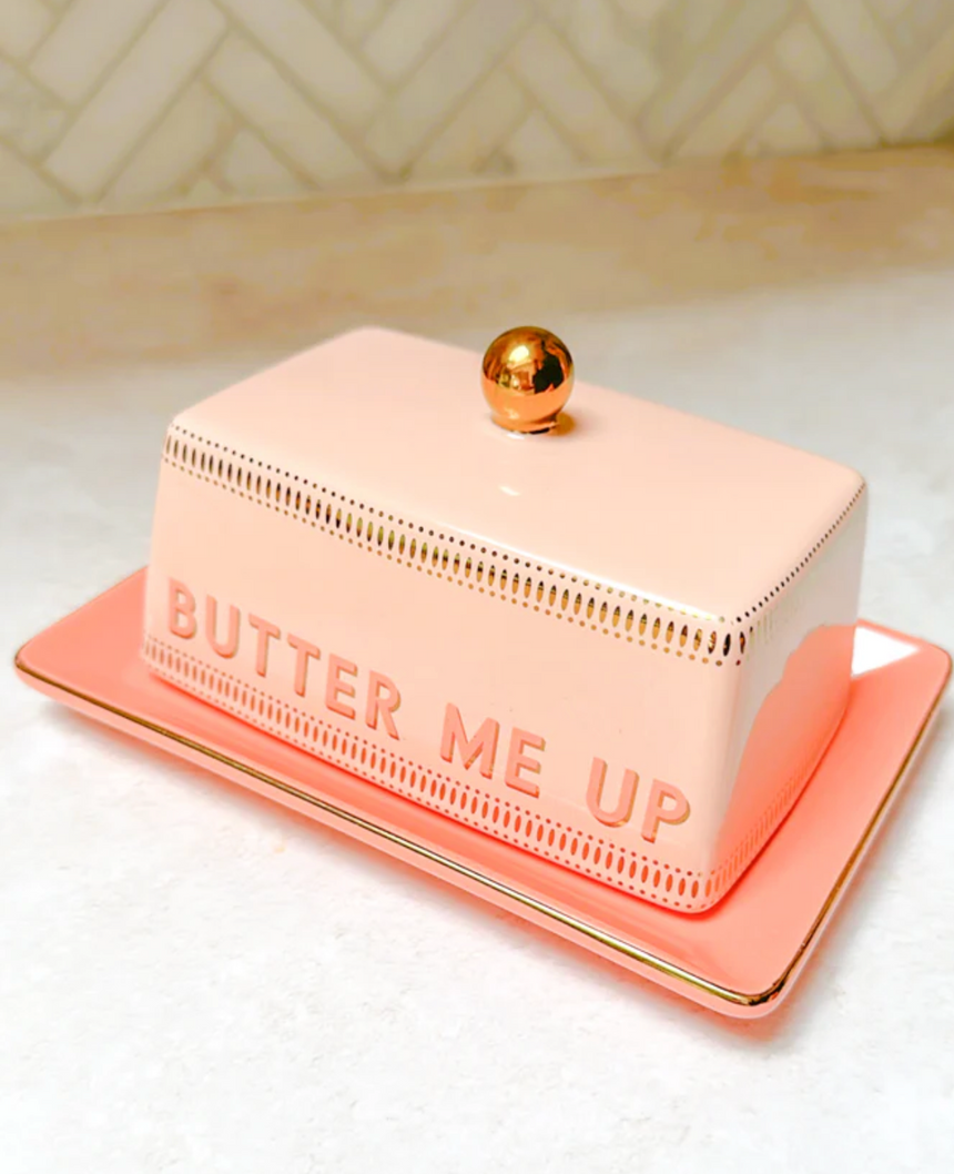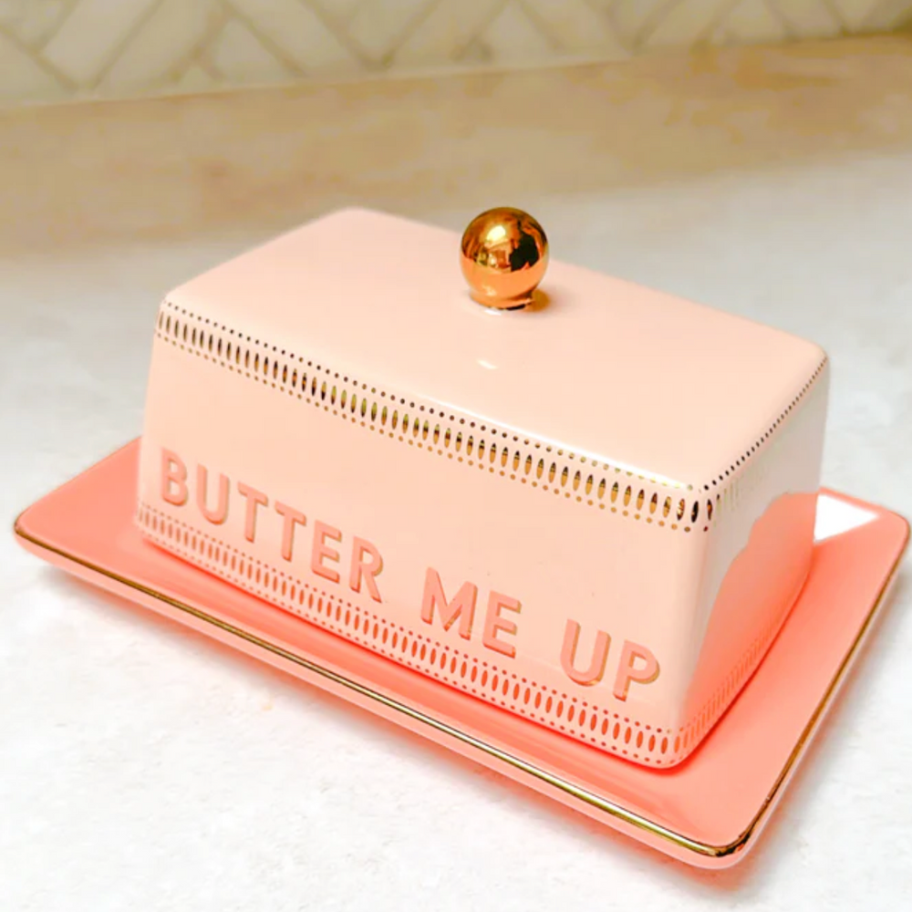 Serve your butter in style with this gorgeous vintage style butter dish, in a beautiful soft peach colour embellished with gilt gold details a perfect addition to your breakfast time.