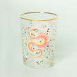 This gorgeous hi-ball vintage style glass features a stunning illustration of a slithery snake on a vintage style polka dots pattern background, finished with gold leaf trimming giving each glass a unique and individual style, mix and match with the other designs for a charming summer table setting.