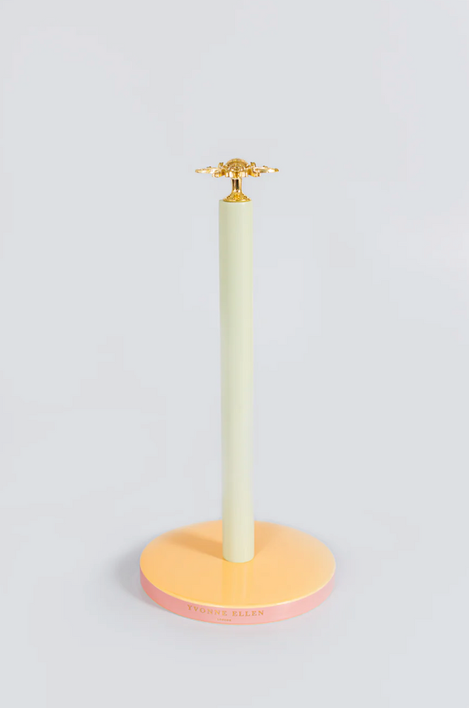 Keep your kitchen tidy and organised with this stylish kitchen roll holde, made from Beech wood pole & a solid stoneware base for stability in soft pastel colours and elegant gold bee on top, that will make cleanups & cooking prep a breeze, a must have for any busy kitchen.