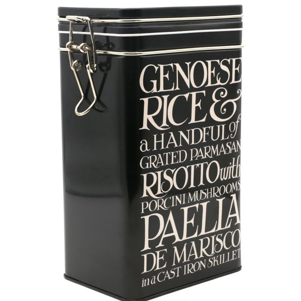Made from stainless steel featuring Emma's iconic black toast pattern that will inject colour and life into your kitchen ,a perfect solution for keeping your cupboard staples fresh whether it be rice, flour or barley, the clip top lid tightly presses the silicone seal against the canister for an airtight seal.