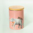 Add a pop of colour and elegance to your kitchen while keeping your counters clutter-free with this gorgeous storage canister, from British designer Yvonne Ellen known for her fun and quirky designs, made of high-quality bone china in a beautiful pastel pink featuring stunning illustrations of a graceful elephant, finished with beautiful gold leaf detailing, and an airtight bamboo lid that fits neatly on top, ideal for storing dried foods, coffee, tea or sugar.